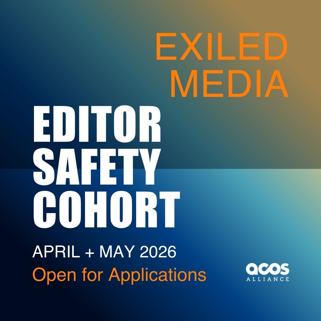 - The ACOS Alliance has launched a call for applications for its first Exiled Media Editor Safety Cohort. The course is conducted online, and ACOS is offering free access to a small group of editors working for exile media globally. This course is designed for those who assign news stories and investigative reporting to local journalists and freelancers, and participate in editorial decision-making and safety matters within their newsroom or media outlet. The application deadline is March 17, 2026.